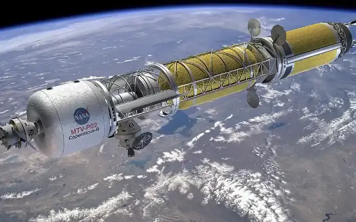 على عكس الصواريخ الكيميائية التي تعتمد على الاحتراق، يستخدم الدفع الحراري النووي مفاعلًا نوويًا لتسخين مادة دافعة - عادةً ما تكون هيدروجينًا سائلًا. يتمدد الهيدروجين المسخن ويُطرد عبر فوهة، مولدًا قوة دفع. تُعد هذه الطريقة أكثر كفاءة بكثير من الدفع الكيميائي التقليدي، مما يسمح للمركبات الفضائية بالسفر لمسافات أطول باستخدام وقود أقل. تتمثل الميزة الرئيسية للدفع الحراري النووي في ارتفاع نسبة الدفع إلى الوزن، مما يُمكّن من التسارع السريع. بالوصول إلى المريخ في 45 يومًا فقط، سيقضي رواد الفضاء وقتًا أقل بكثير في التعرض للإشعاع الكوني والجاذبية الصغرى، مما يُقلل من المخاطر الصحية المرتبطة بالسفر الفضائي طويل الأمد.