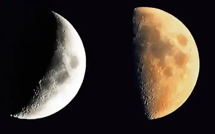 اللون الظاهري المتغير للقمر، بعد ترشيحه بواسطة الغلاف الجوي للأرض